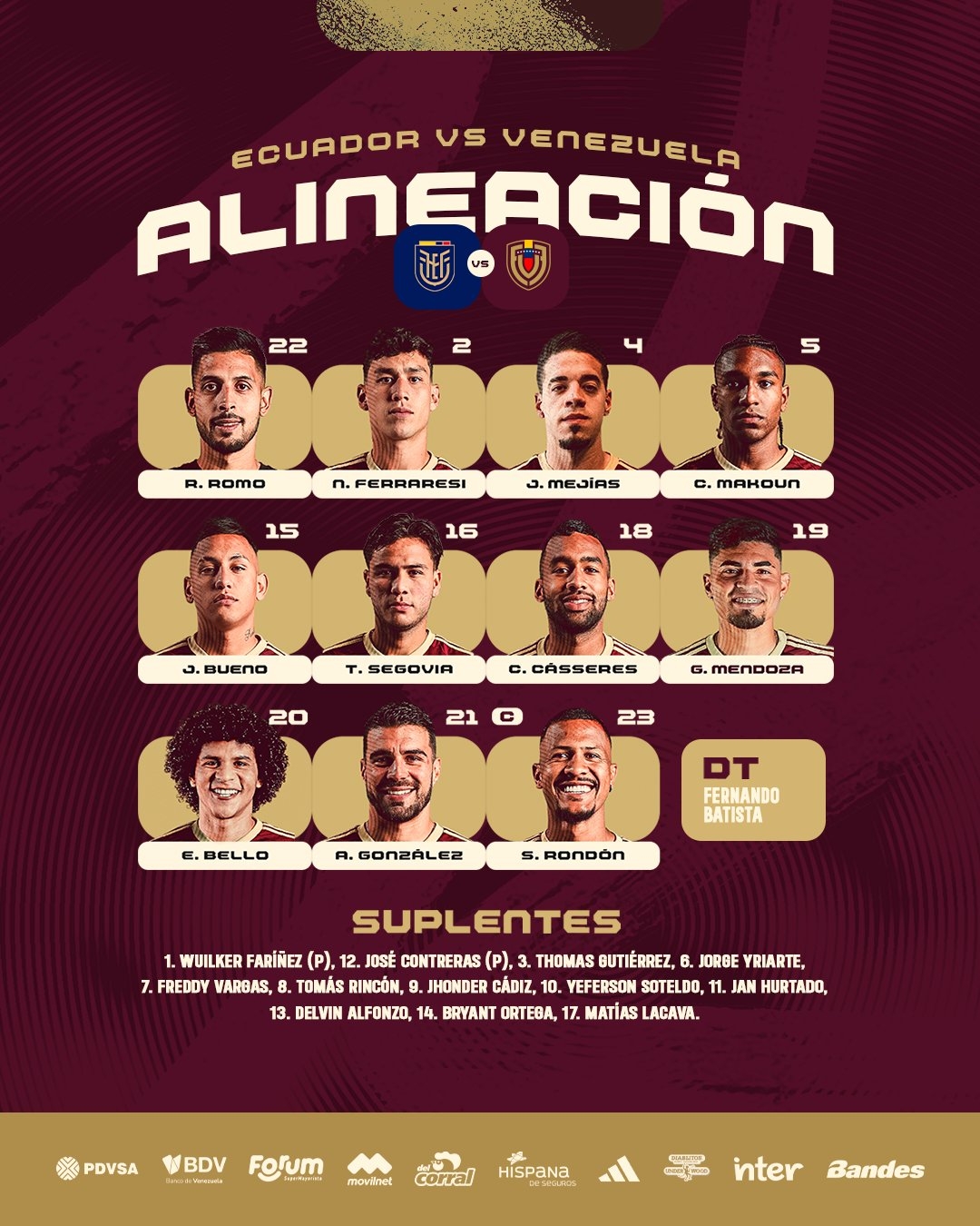 2025-03-22 10:16:37厄瓜多爾vs委內(nèi)瑞拉首發(fā):凱塞多、埃斯圖皮尼安、帕喬先發(fā)