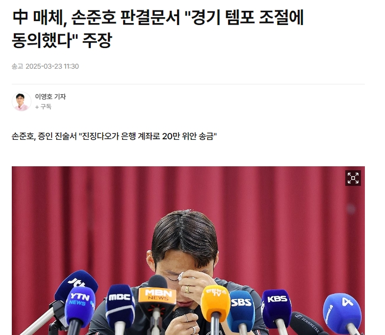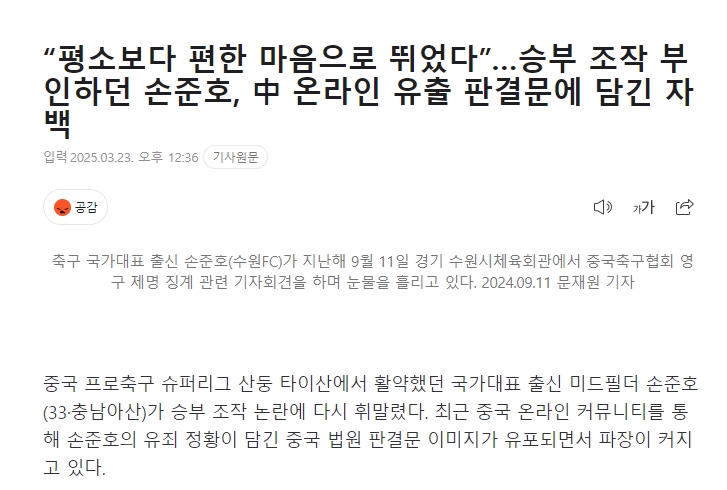 韓媒標(biāo)題:“我比平時(shí)更放松心態(tài)比賽”孫準(zhǔn)浩否認(rèn)操縱比賽,但在中國網(wǎng)絡(luò)上泄露的判決書中承認(rèn)了這一罪行。