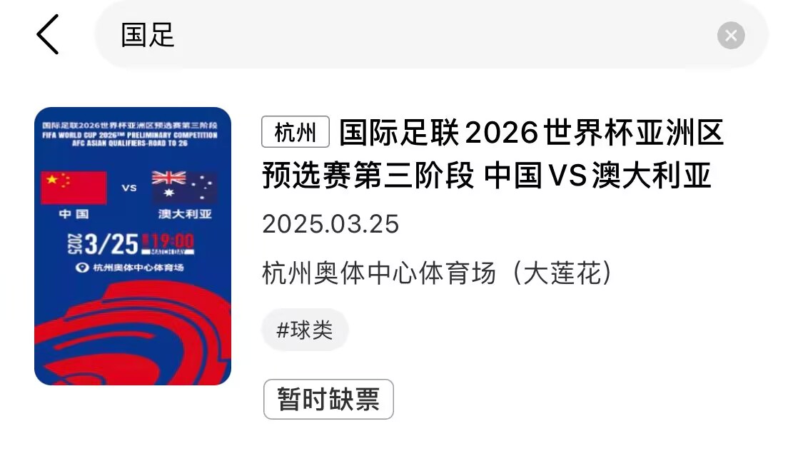 2025-03-25 12:55:55有錢也買不到了!黃牛平臺顯示,國足vs澳大利亞已缺票
