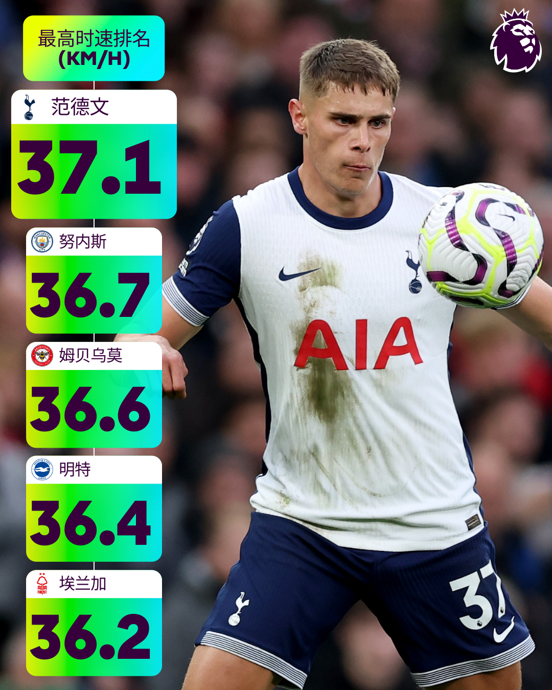 2025-03-26 20:34:38本賽季英超至今球員最高時(shí)速:范德文領(lǐng)跑,努內(nèi)斯、姆貝莫二三