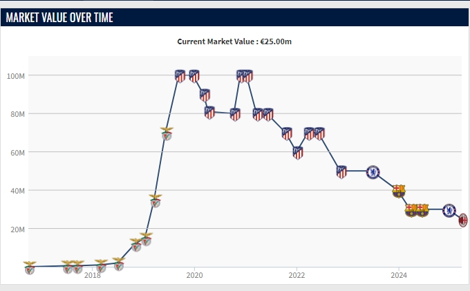2025-03-26 20:35:44巔峰1億歐!25歲菲利克斯在米蘭10場(chǎng)1球,最新身價(jià)跌至2500萬(wàn)歐