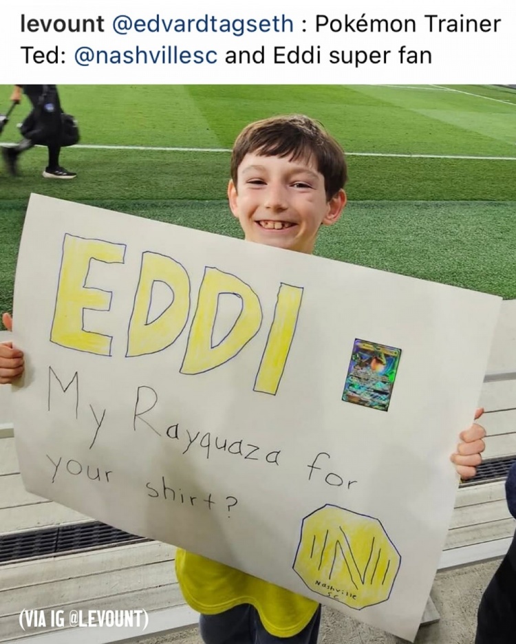 3月26日訊 美職聯(lián)球隊(duì)納什維爾SC的官方Instagram最近發(fā)文,表示一位小球迷用寶可夢卡牌換到了球員的球衣。