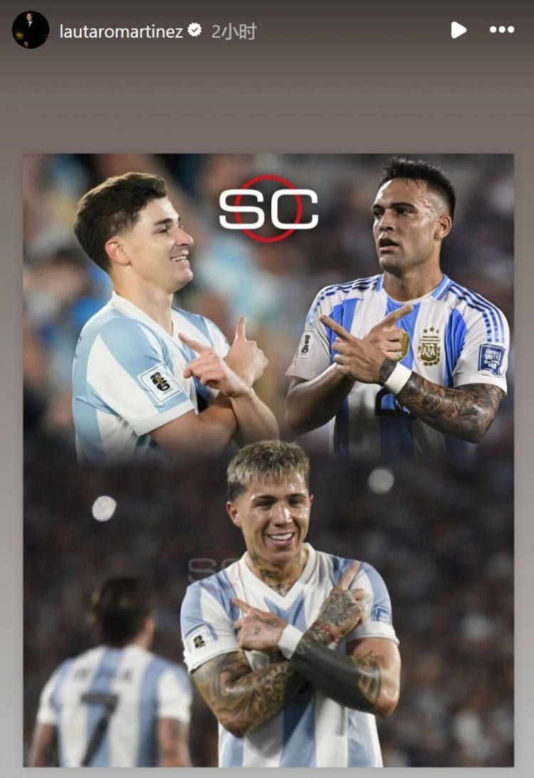 2025-03-26 20:42:19阿爾瓦雷斯&恩佐模仿勞塔羅慶祝動(dòng)作,后者社媒轉(zhuǎn)發(fā)三人照片