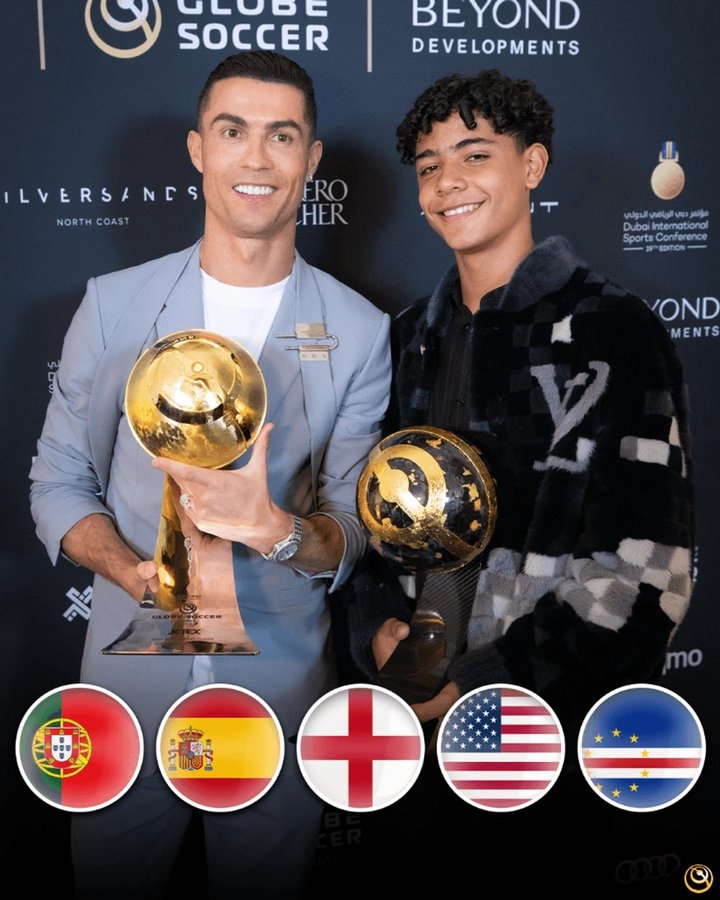 03月27日訊 C羅的兒子,14歲的迷你羅目前正在利雅得勝利青年隊效力,并且不斷成長。西媒Antena 3報道表示,他有資格為5支國家或地區(qū)代表隊出戰(zhàn)。