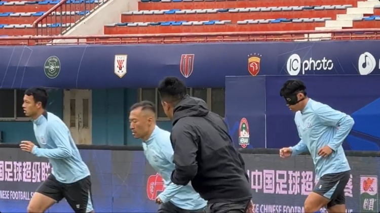 2025-03-28 19:40:30申花今天賽前踩場訓練,中衛(wèi)朱辰杰戴面具參加