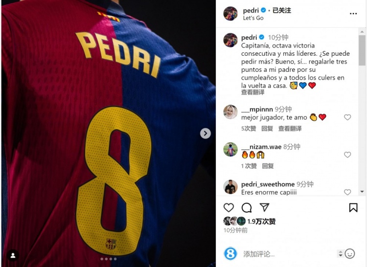 2025-03-28 19:40:33全場(chǎng)最佳!佩德里社媒:擔(dān)任隊(duì)長(zhǎng)+西甲8連勝,三分獻(xiàn)給巴薩球迷