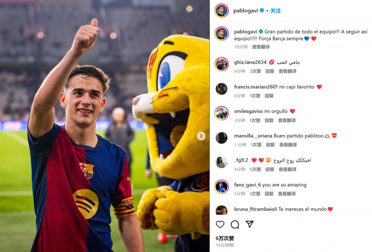 2025-03-28 19:52:56作為隊長首發(fā)!20歲加維社媒:全隊踢出精彩比賽,巴薩繼續(xù)加油!