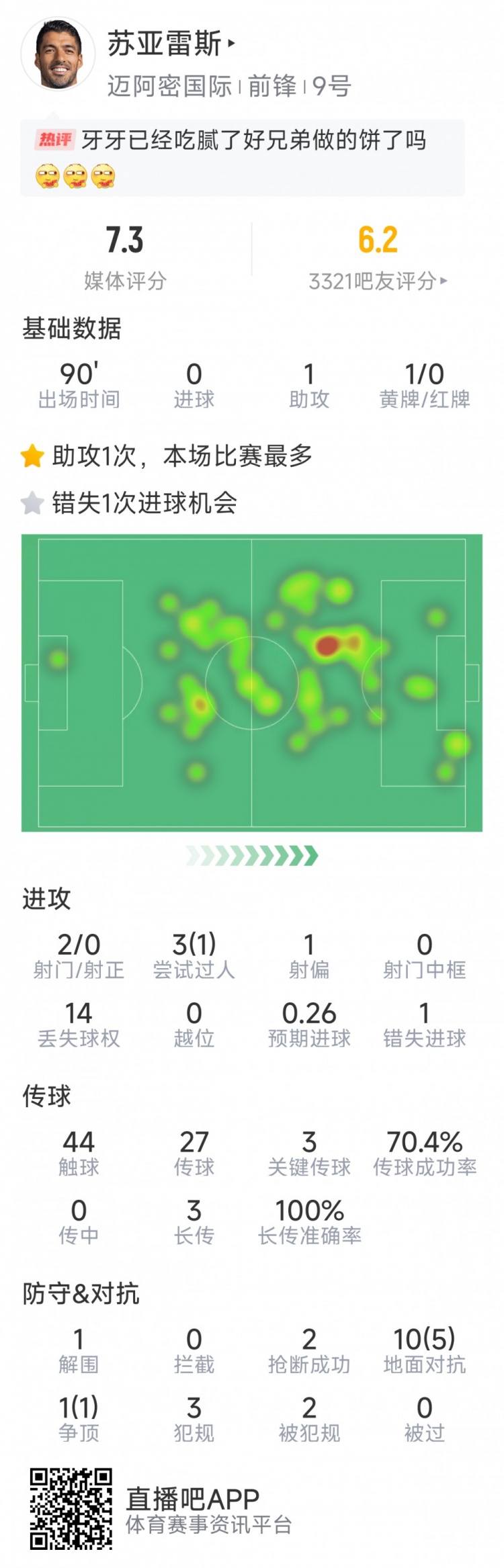 2025-03-30 20:20:16蘇亞雷斯本場數(shù)據(jù):助攻梅西破門,3次關(guān)鍵傳球,1次錯失良機