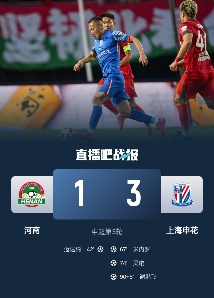 遭逆轉(zhuǎn)后,河南隊(duì)的韓國籍主帥南基一忍無可忍,直接將剛替換上場15分鐘的楊意林換下。申花燃起的求勝欲,徹底摧垮了對手。補(bǔ)時(shí)第5分鐘,反擊中米內(nèi)羅左肋過人后回傳,替補(bǔ)出場的謝鵬飛推入空門,這場大逆轉(zhuǎn)的比分定格在3-1。