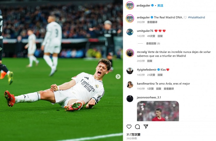 2025-03-30 20:23:34時隔1個月后首發(fā)表現(xiàn)出色!居勒爾社媒曬慶祝照:皇馬DNA!