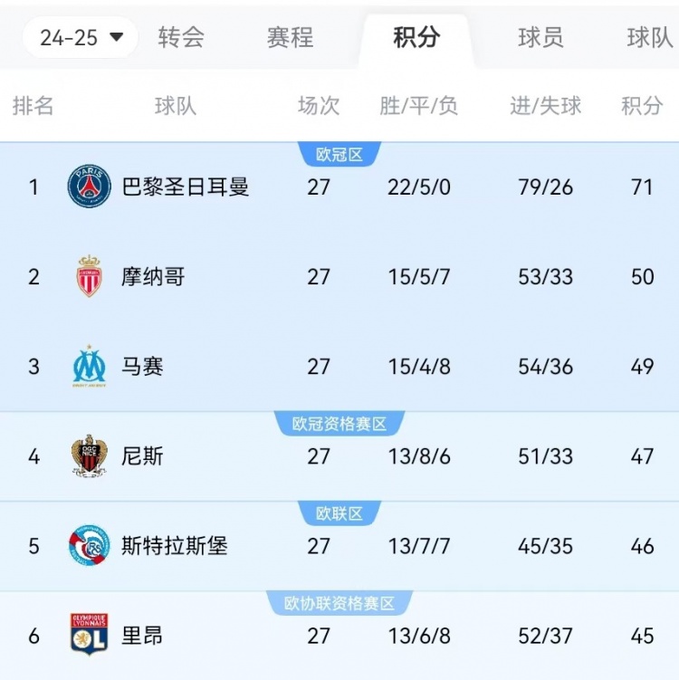 2025-03-30 20:24:45還剩7輪領(lǐng)先21分+33凈勝球!巴黎下輪打平昂熱,就可提前奪冠