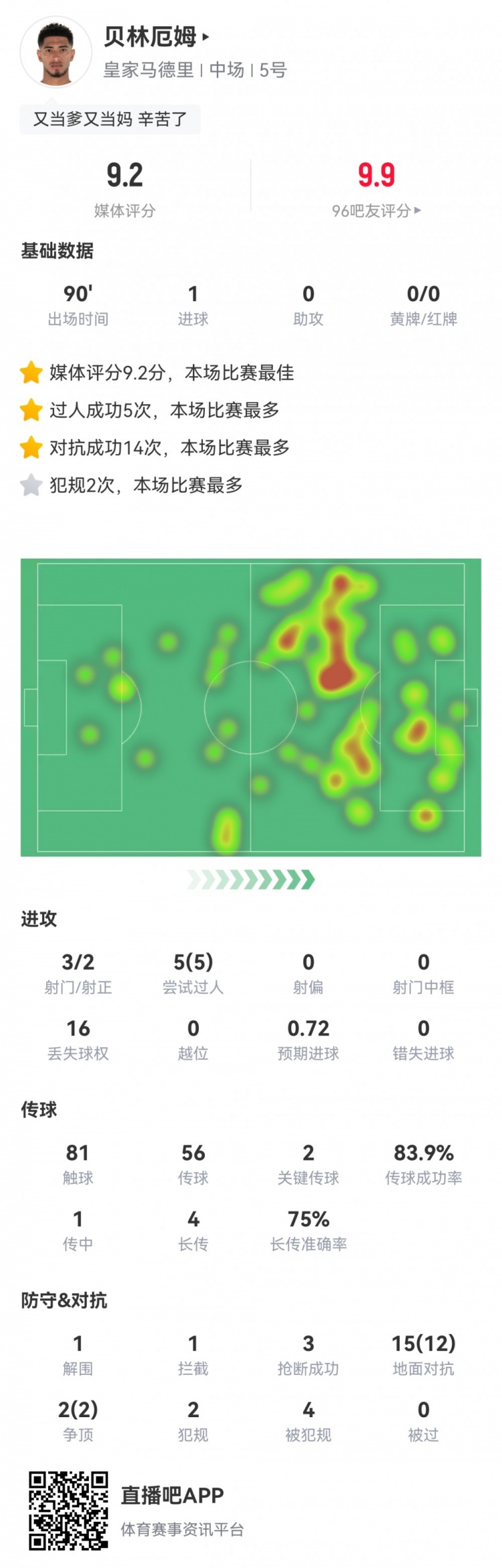 2025-03-30 20:25:51貝林數(shù)據(jù):1進球,5次過人全成功,14次成功對抗,全場最高9.2分