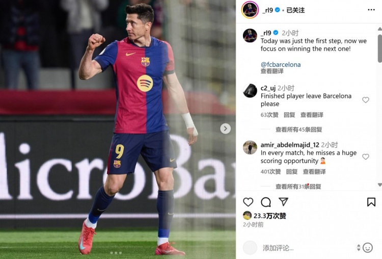 本場(chǎng)比賽萊萬替補(bǔ)登場(chǎng)打進(jìn)一球,賽后他也在個(gè)人社媒曬出本場(chǎng)慶祝進(jìn)球照片,配文寫道:“今天的比賽只是第一回合,現(xiàn)在我們專注于贏下下一回合!”