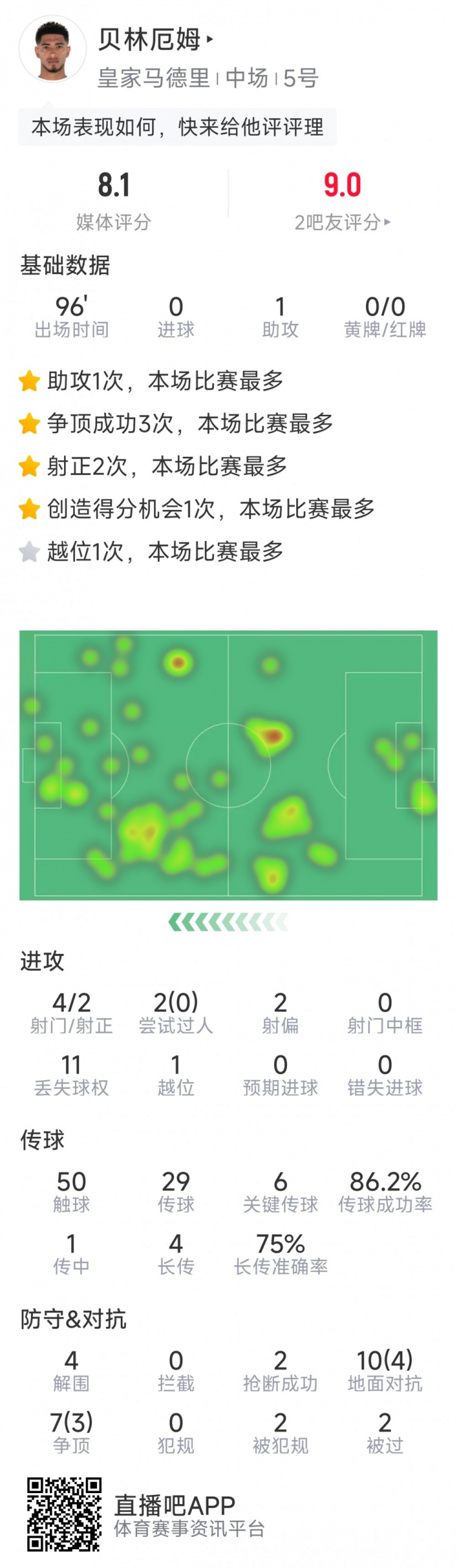 2025-02-27 08:09:58貝林厄姆本場數(shù)據(jù):1次助攻,6次關(guān)鍵傳球,4射2正