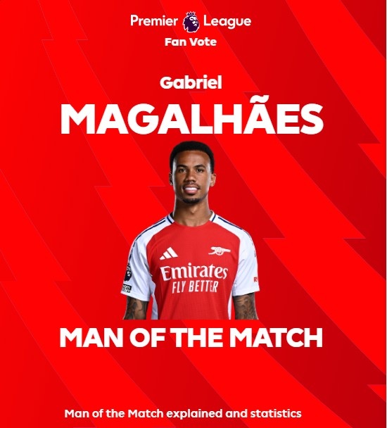 2025-02-27 08:10:38英超官方:加布里埃爾當選阿森納0-0諾丁漢森林全場最佳