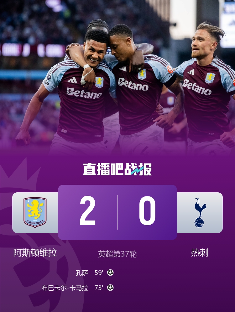 英超-熱刺0-2阿斯頓維拉六輪不勝 孔薩破門