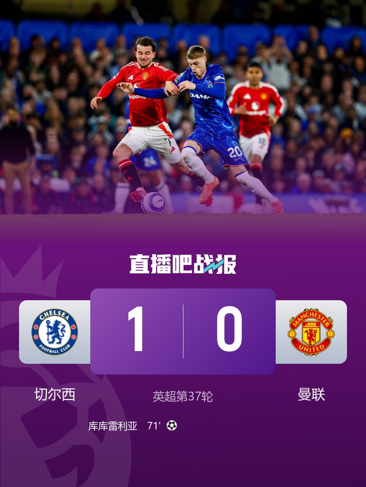 切爾西1-0曼聯(lián)先賽升至第四 庫庫雷利亞頭球制勝紅魔8輪不勝