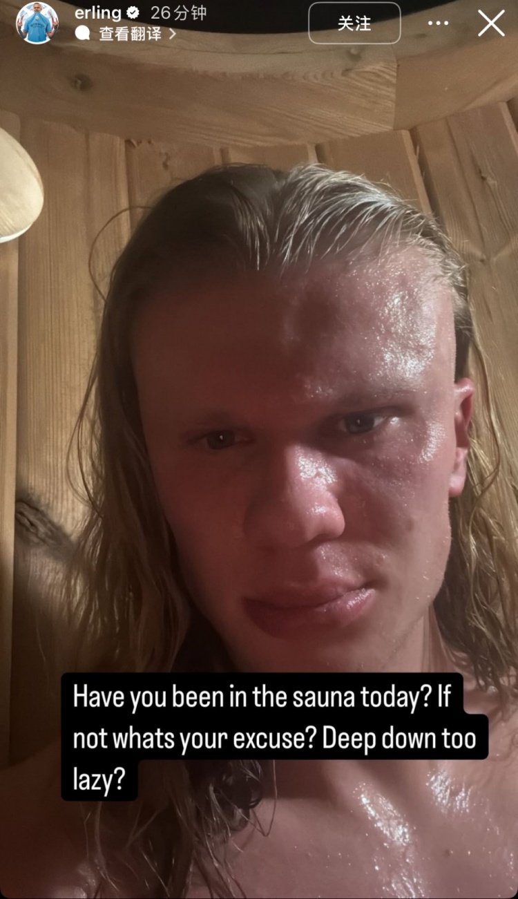 2025-02-28 08:04:04今天你蒸了嗎?哈蘭德更新社媒,曬出自己蒸桑拿的照片