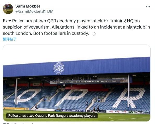 郵報:英冠QPR兩名球員訓(xùn)練時被警方帶走,涉嫌偷窺罪