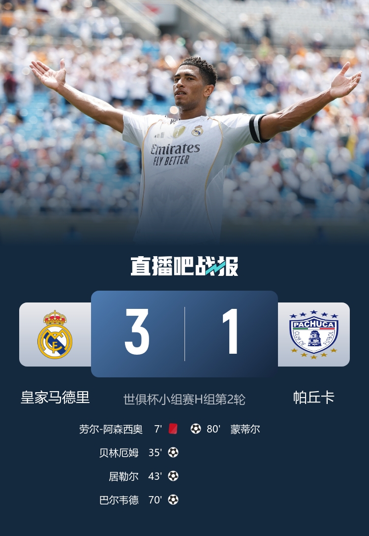 2025-06-23 03:51:212025年06月23日 登頂!十人皇馬3-1帕丘卡取首勝 貝林居勒爾82破門阿森西奧直紅