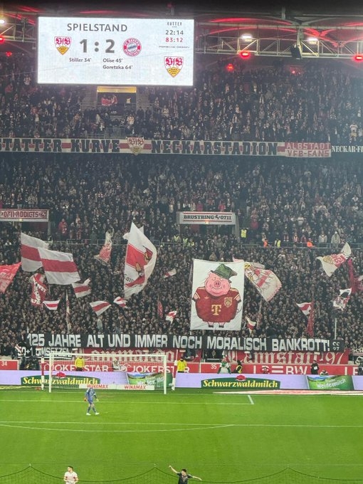 2025-03-01 08:09:37斯圖加特球迷打橫幅嘲諷拜仁:125歲了,道德仍然淪喪