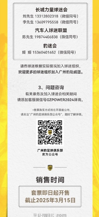 2025-03-01 16:06:15廣州豹新賽季主場票務(wù)公告:個人套票599元/賽季,散票最高100元