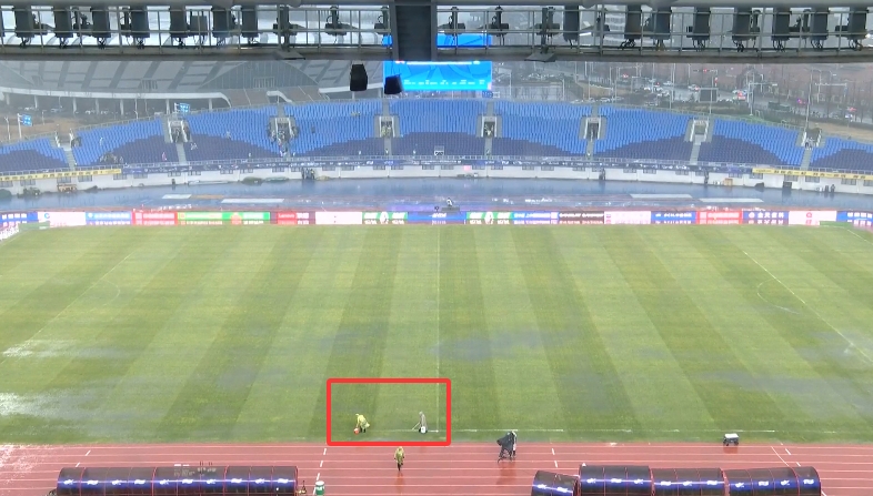2025-03-02 18:13:01雨勢(shì)太大!西海岸主場(chǎng)工作人員在場(chǎng)邊剛畫完線,線又被雨沖模糊了