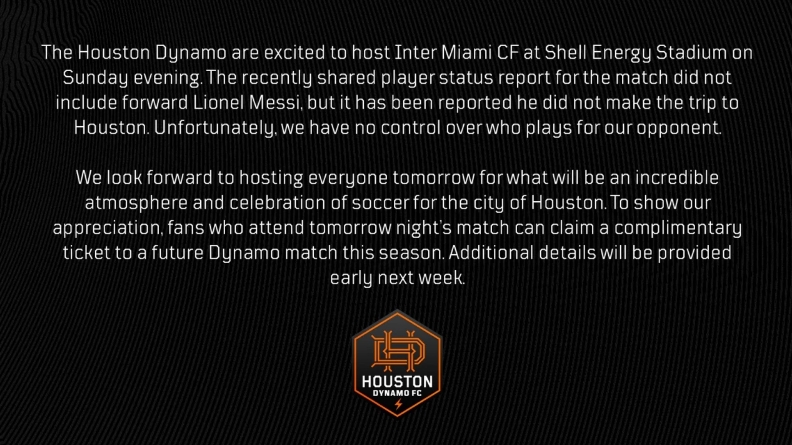 休斯頓迪納摩俱樂部很高興能在周日晚上在主場(chǎng)迎戰(zhàn)邁阿密國(guó)際俱樂部。最近的比賽球員狀態(tài)報(bào)告中沒有梅西,據(jù)報(bào)道稱他沒有前往休斯頓。