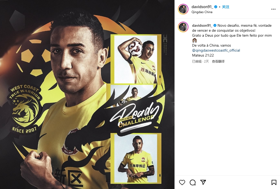 2025-02-21 17:48:35戴維森社媒發(fā)文談重返中超,陶強龍留言:NB