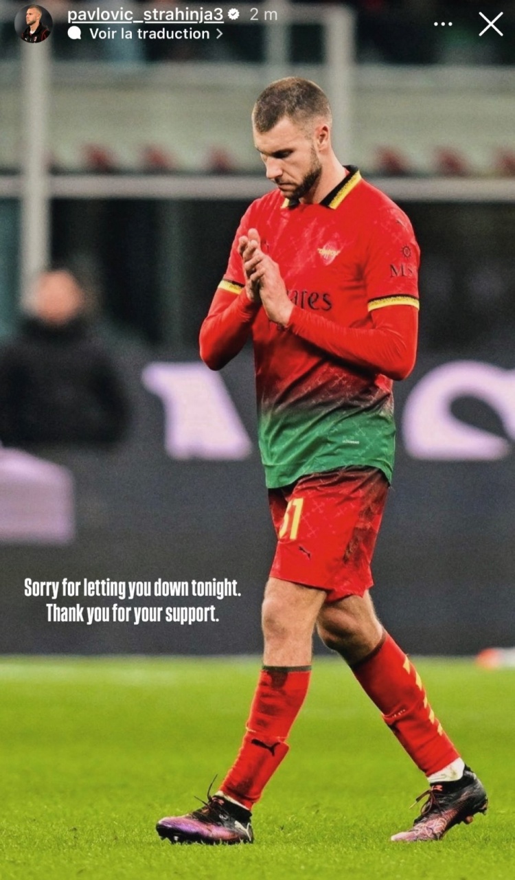 2025-03-03 08:49:27身后放鏟染紅!帕夫洛維奇社媒致歉:很抱歉今晚讓球迷們失望了