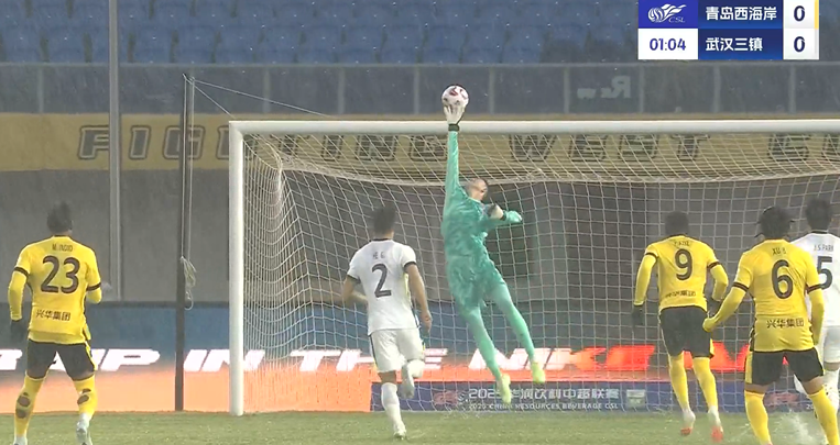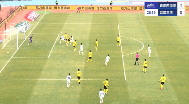 上半場補時3分鐘,青島西海岸1-0武漢三鎮(zhèn)。