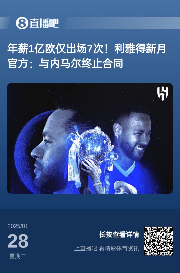 2025-03-03 17:31:00要錢何用?內(nèi)馬爾在新月年薪1億出場7次,免簽桑托斯1個月即追平
