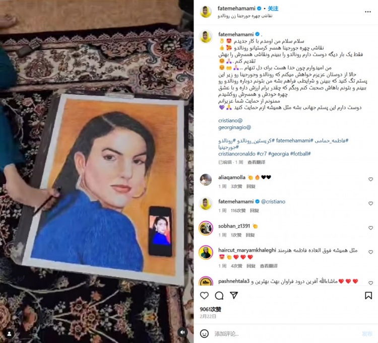 2025-03-04 20:30:43外媒:伊朗一畫家希望向C羅贈(zèng)送禮物,她為喬治娜準(zhǔn)備了畫作