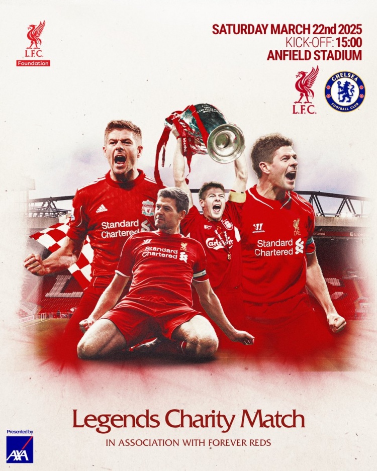 本場(chǎng)比賽將于3月22日周六于安菲爾德進(jìn)行,比賽所得的所有收入將捐給利物浦足球俱樂(lè)部基金會(huì),并支持包括Forever Reds、切爾西俱樂(lè)部基金會(huì)和切爾西球員信托基金在內(nèi)的受益人。