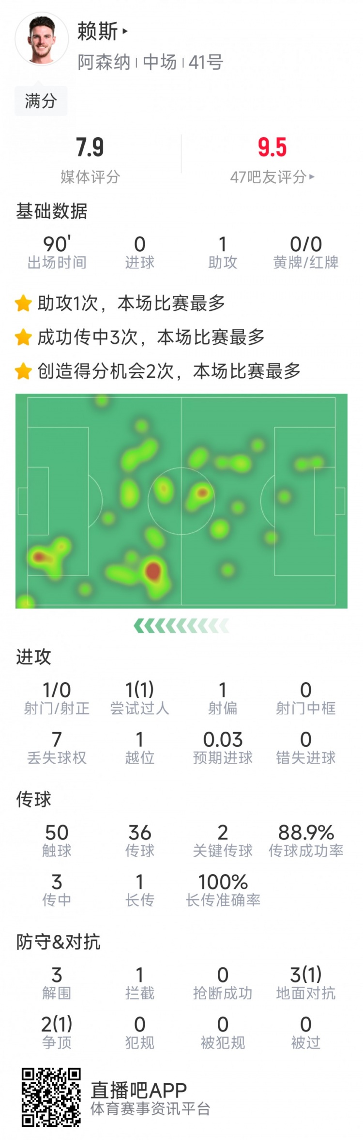 2025-03-05 11:29:12攻守俱佳!賴(lài)斯本場(chǎng)數(shù)據(jù):1次助攻,2次關(guān)鍵傳球,3次解圍