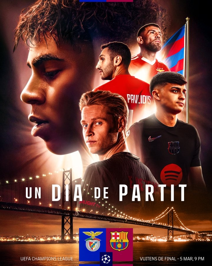 2025-03-05 20:50:21巴薩曬海報(bào)預(yù)熱與本菲卡比賽,亞馬爾、德容、佩德里出鏡