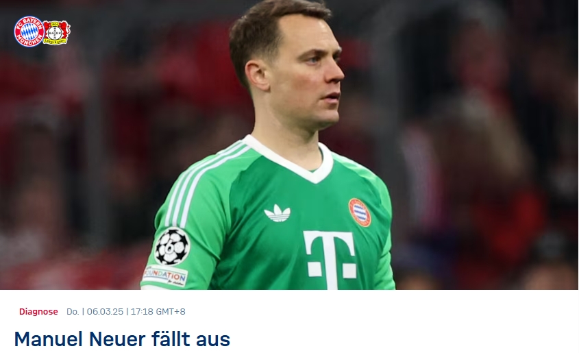 2025-03-06 19:52:04缺席歐冠16強次回合!官方:諾伊爾小腿肌肉撕裂,據(jù)悉缺陣3-4場