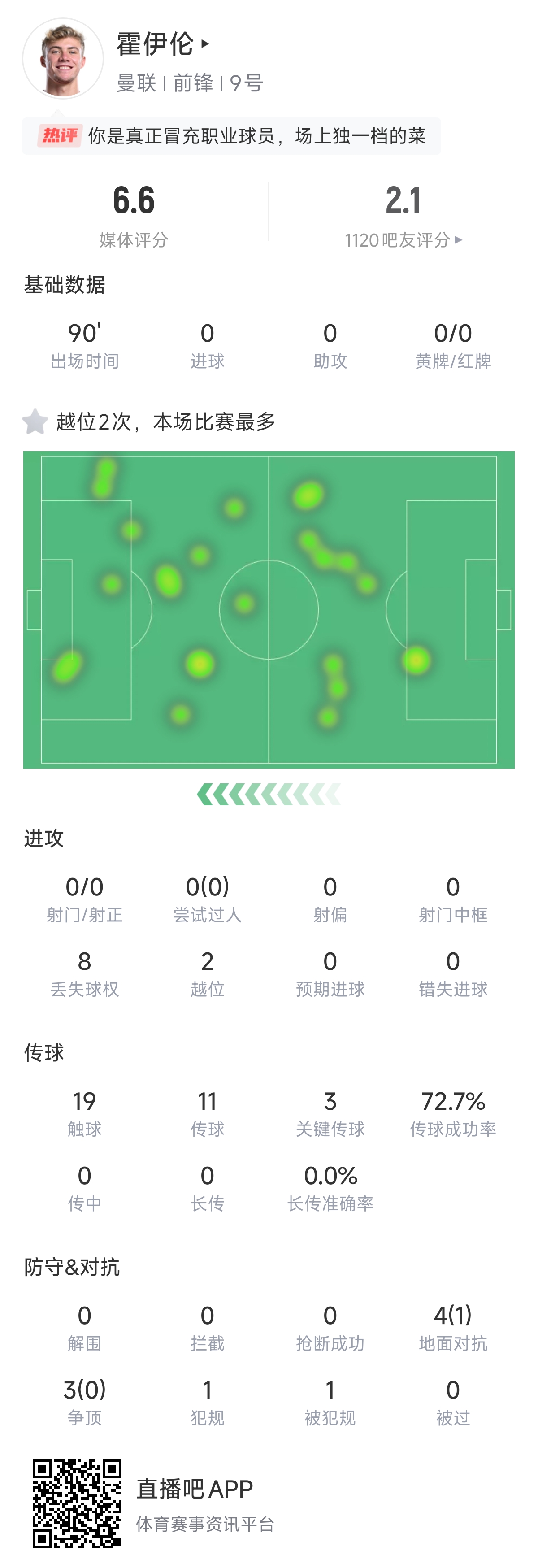 2025-03-07 13:04:036000萬(wàn)身價(jià)怕是要掉了…22歲霍伊倫熱點(diǎn)圖遍布全場(chǎng)但0射0正2越位