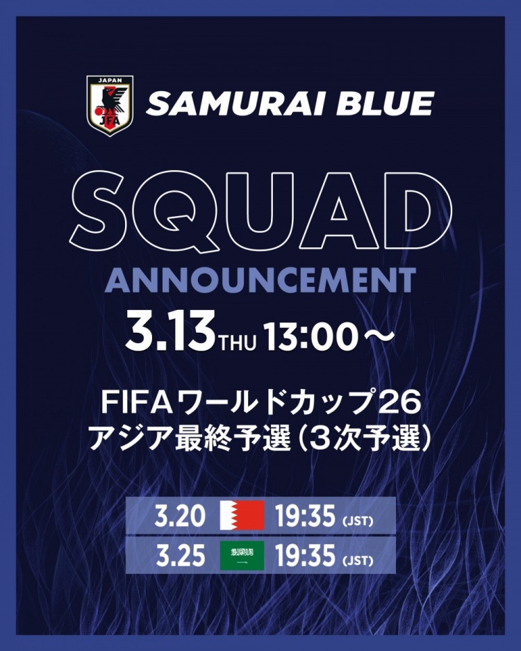 3月7日訊 根據(jù)日本國家隊(duì)官方的消息,日本隊(duì)3月份世預(yù)賽名單將在3月13日公布。