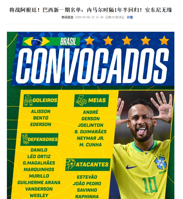 2025-03-07 23:53:30世體:內(nèi)馬爾重返巴西國家隊(duì),拉菲尼亞將讓出10號球衣