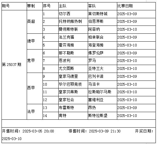 傳足勝負彩第25037期中不乏焦點賽事,其中曼聯對陣阿森納尤為引人關注。此外,切爾西主場面對萊切斯特城,尤文與亞特蘭大將在都靈安聯球場展開對決,皇馬則德比對陣巴列卡諾。
