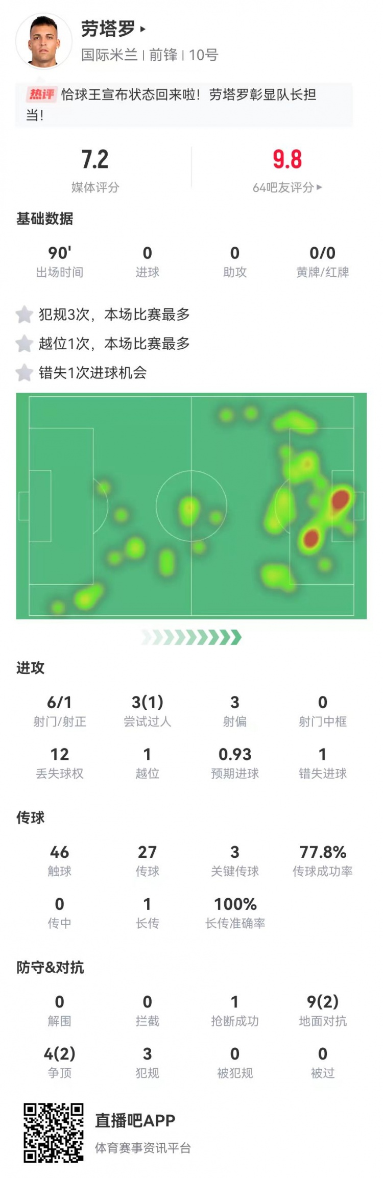 2025-03-09 12:29:54勞塔羅本場(chǎng)數(shù)據(jù):6射1正+1失良機(jī) 3關(guān)鍵傳球+3犯規(guī) 13對(duì)抗4成功