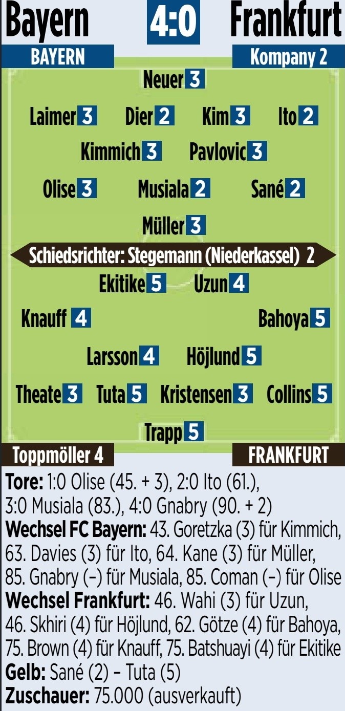 2025-02-24 16:09:43圖片報(bào)評(píng)分:穆西亞拉、薩內(nèi)、伊藤洋輝、戴爾2分并列最佳