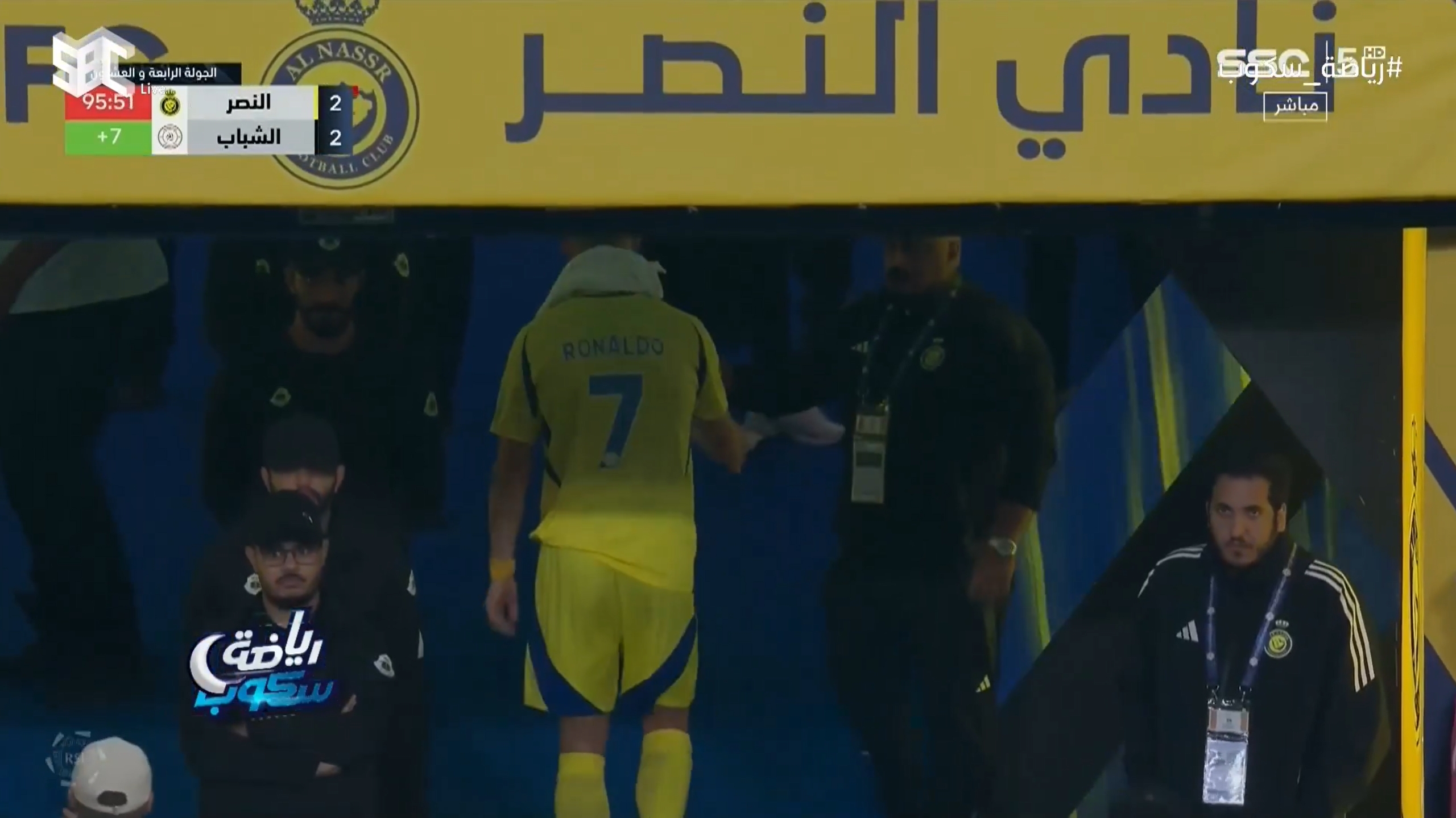第24輪沙特聯(lián),C羅在上半場補(bǔ)時(shí)第7分鐘破門并在第71分鐘被換下。但電視鏡頭捕捉到C羅在球隊(duì)被2-2扳平后的憤怒畫面,并且他選擇在終場哨聲吹響前提前走向球員通道。