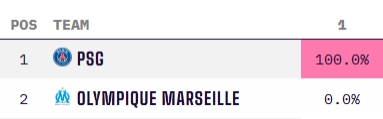 國米:73.3%;那不勒斯:22%;亞特蘭大:3.7%;尤文:0.8%