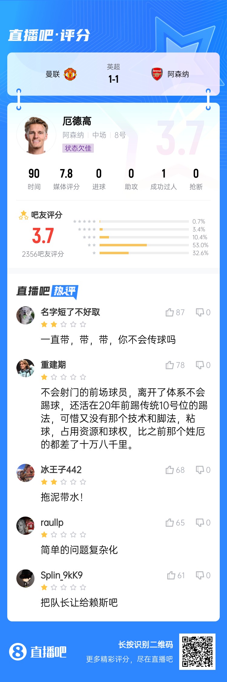 2025-03-10 09:43:54惹眾怒?厄德高被集火:看著很忙啥也沒干 拿他比B費是對B費不敬
