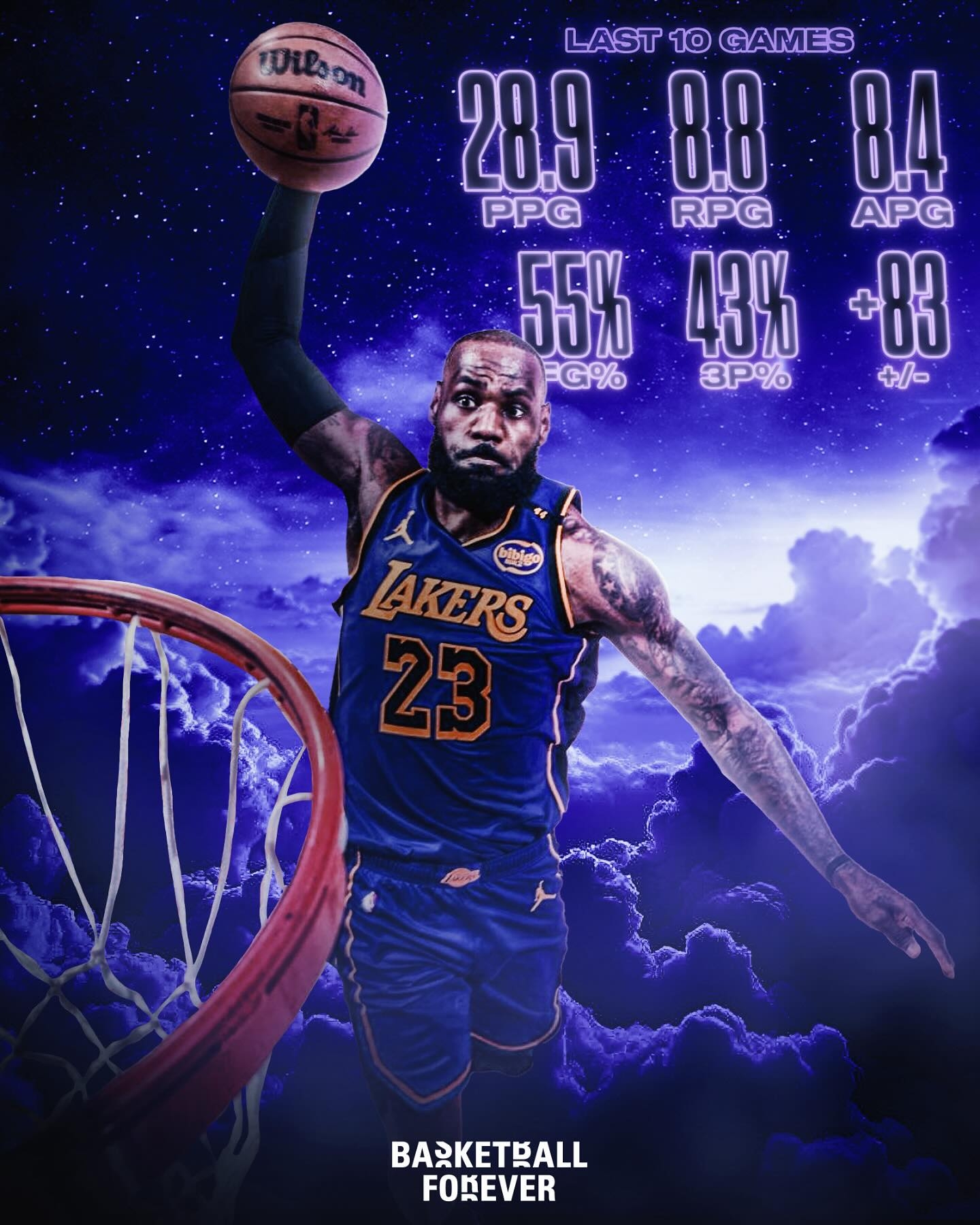 2025-02-24 16:15:17詹姆斯過去10場場均28.9分8.8板8.4助 命中率55%三分43%正負值+83