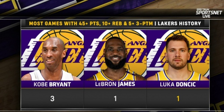 2025-03-14 20:51:10單場45分10板&命中5+三分!東契奇成湖人隊史科詹后第三人