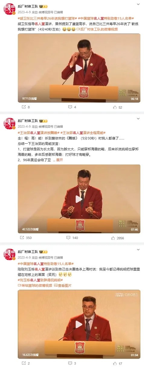 兩年前中國籃球名人堂第一次辦入堂儀式時(shí),我還在老東家為后廠村體工隊(duì)玩命,那會(huì)我一邊錄屏搶時(shí)間搶話題,一邊隔著屏幕感受著那種“新的文化爭(zhēng)在建立”帶來的輕松氣氛: