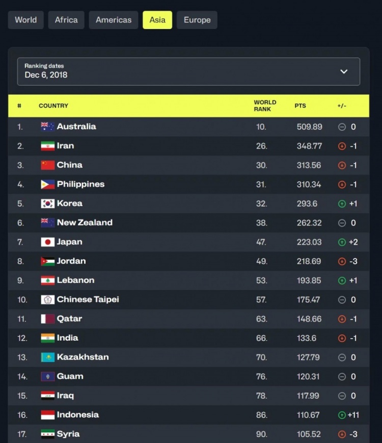 2018年12月,關(guān)島第一次有了世界排名,落在了亞洲第14,世界第79的位置